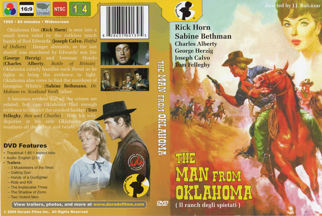 Rick Horn is Oklahoma Dan,the new Sheriff. He has to outsmart the ruthless ranch owner(Joseph Calvo, Fistful of Dollars), who rules and controls the small town. The last Sheriff was murdered, and the bandits run wild with a total disregard for the law.